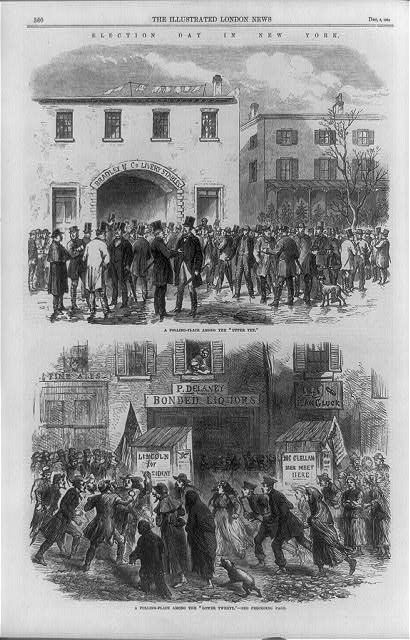 Две сцены в день выборов богатом и бедном районах Нью-Йорка в 1864 году. | Фото: loc.gov.